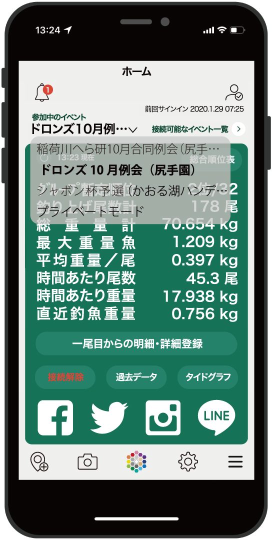 競技に関心がなくても、釣り日誌として使用可能です。1日の釣りを時系列で見える化